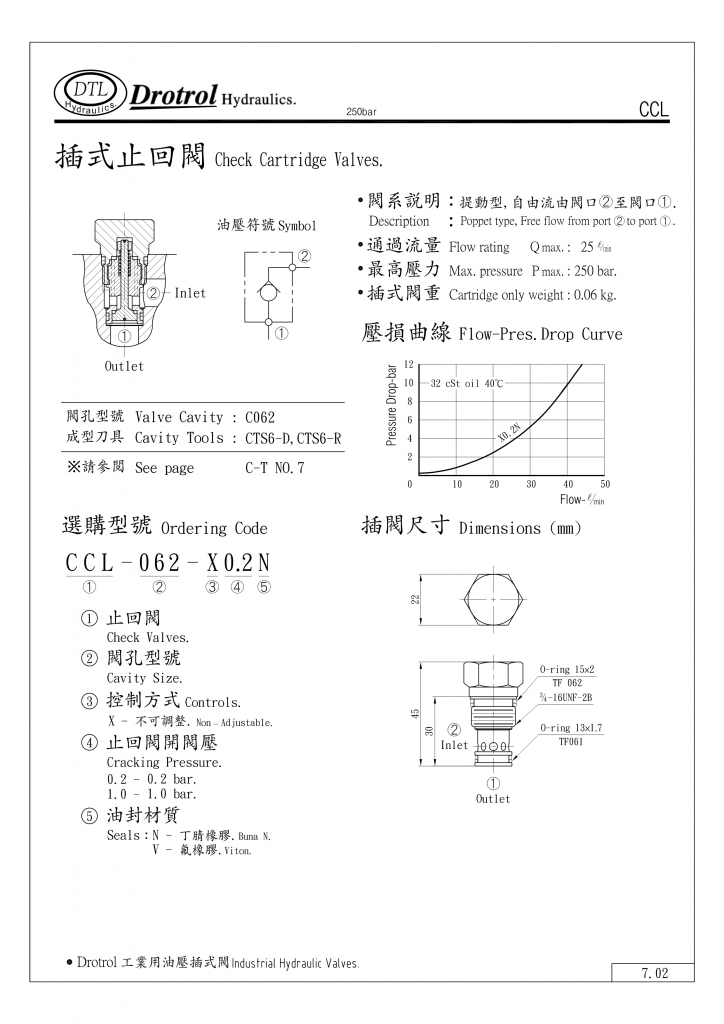 DTL插式止回閥常規(guī)型號(hào)參考:CCL-082-X0.2N , CCL-082-X0.2V , CCL-082-X1.0N , CCL-082-X1.0V ,