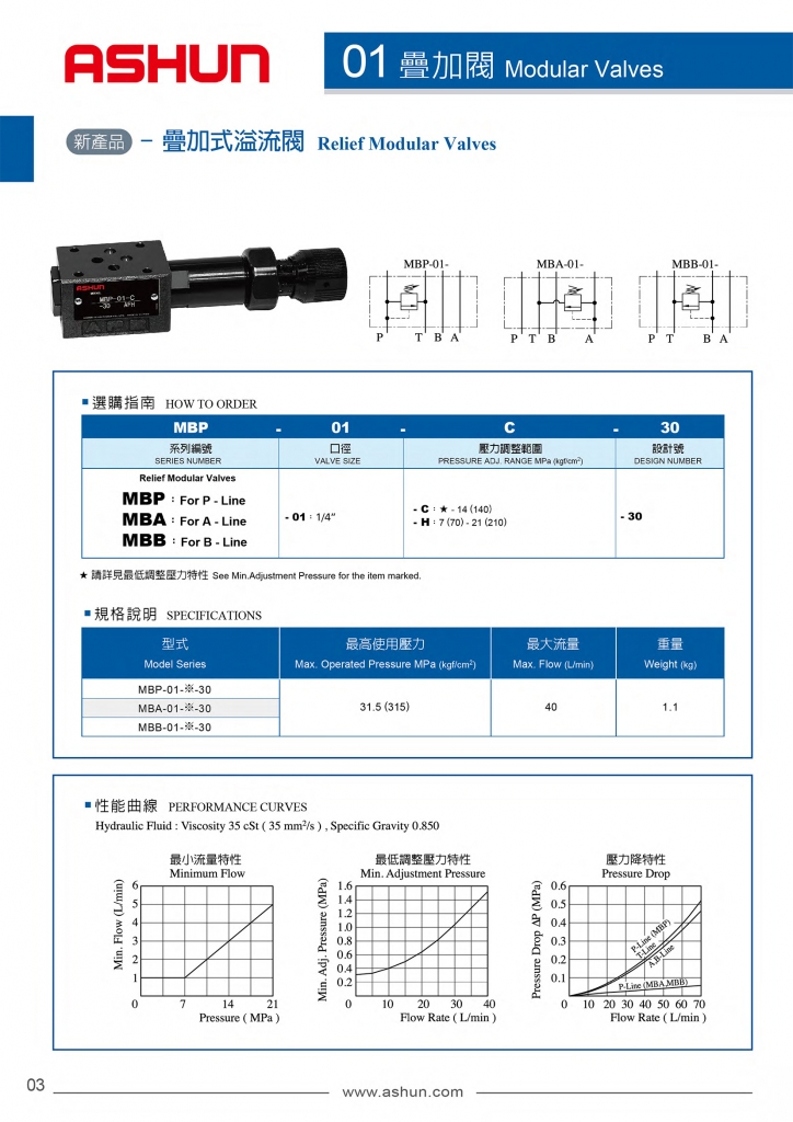 MBP,MBA,MBB系列疊加式溢流閥常規(guī)型號(hào)參考:MBB-01-H-30 , MBA-01-H-30 , MBP-01-H-30 , MBB-01-C-30 , MBA-01-C-30 , MBP-01-C-30