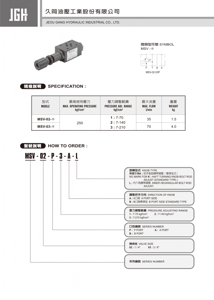 JGH久岡疊加式控制閥部分常規(guī)型號參考:MSV-02-A-1-A , MSV-02-A-1-B , MSV-02-A-2-A , MSV-02-A-2-B , MSV-02-A-3-A , MSV-02-A-3-B , MSV-02-B-1-A , MSV-02-B-1-B , MSV-02-B-2-A , MSV-02-B-2-B , MSV-02-B-3-A , MSV-02-B-3-B , MSV-02-P-1-A , MSV-02-P-1-B , MSV-02-P-2-A , MSV-02-P-2-B , MSV-02-P-3-A , MSV-02-P-3-B , MSV-03-A-1-A , MSV-03-A-1-B , MSV-03-A-2-A , MSV-03-A-2-B , MSV-03-A-3-A , MSV-03-A-3-B , MSV-03-B-1-A , MSV-03-B-1-B , MSV-03-B-2-A , MSV-03-B-2-B , MSV-03-B-3-A , MSV-03-B-3-B , MSV-03-P-1-A , MSV-03-P-1-B , MSV-03-P-2-A , MSV-03-P-2-B , MSV-03-P-3-A , MSV-03-P-3-B