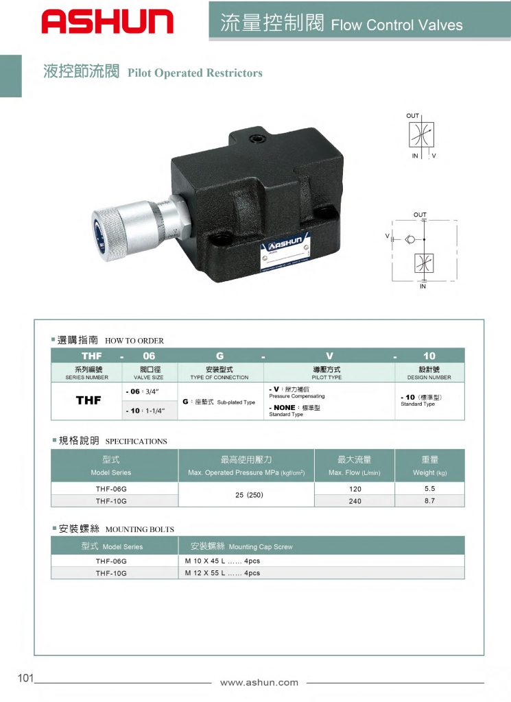 ASHUN液控節(jié)流閥常規(guī)型號參考:THF-06G-V-10 , THF-06G-10 , THF-10G-V-10 , THF-10G-10