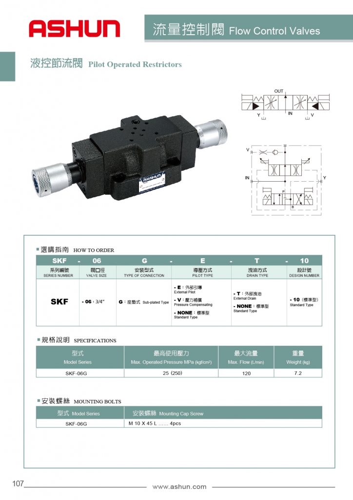 ASHUN油順流量控制閥 SKF系列液控節(jié)流閥
