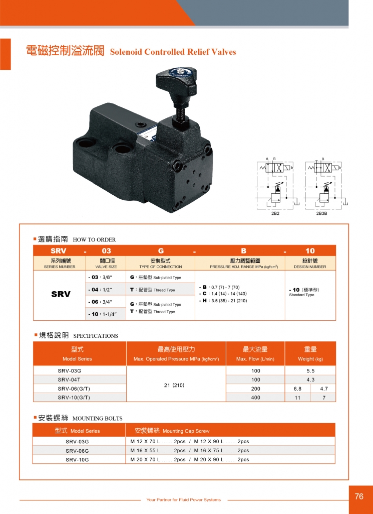 ASHUN電磁控制溢流閥常規(guī)型號參考:SRV-03G-B-10 , SRV-03G-C-10 , SRV-03G-H-10 , SRV-04T-B-10 , SRV-04T-C-10 , SRV-04T-H-10 , SRV-06G-B-10 , SRV-06G-C-10 , SRV-06G-H-10 , SRV-06T-B-10 , SRV-06T-C-10 , SRV-06T-H-10 , S