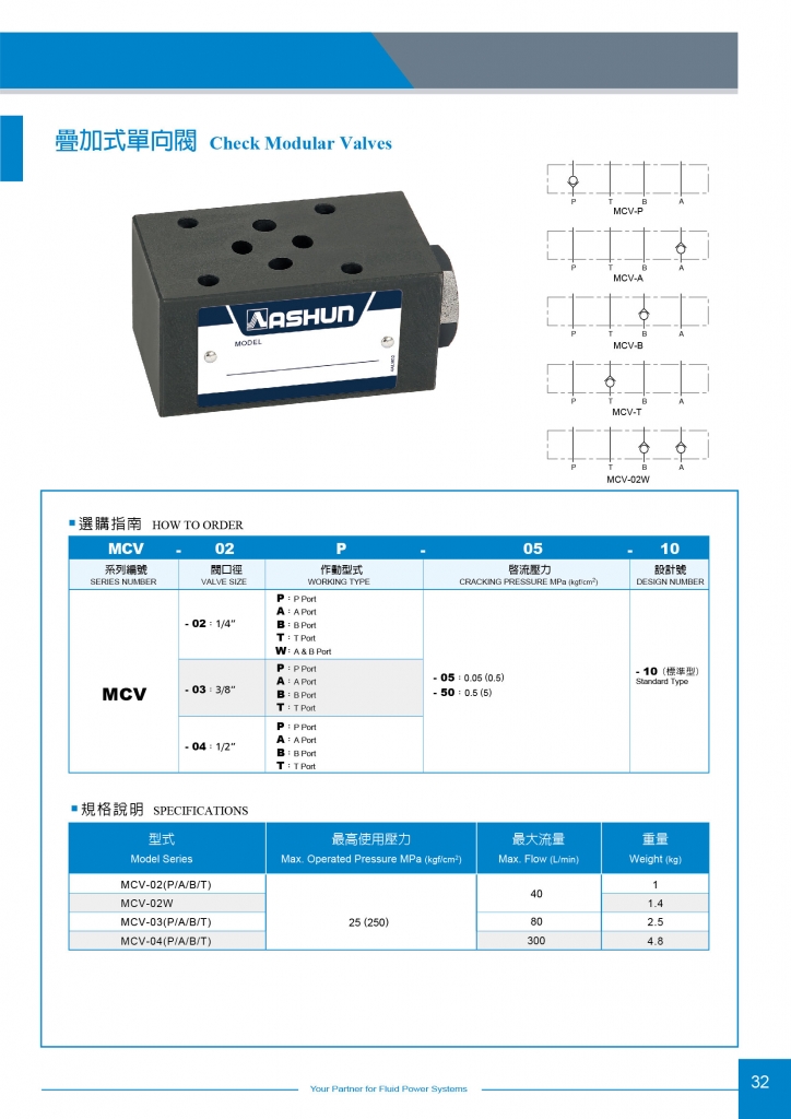 ASHUN疊加式單向閥常規(guī)型號(hào)參考:MCV-02A-05-10 , MCV-02A-50-10 , MCV-02B-05-10 , MCV-02B-50-10 , MCV-02P-05-10 , MCV-02P-50-10 , MCV-02T-05-10 , MCV-02T-50-10 , MCV-02W-05-10 , MCV-02W-50-10 , MCV-03A-05-10 , MCV-03A-50-10 , MCV-03B-05-10 , MCV-03B-50-10 , MCV-03P-05-10 , MCV-03P-50-10 , MCV-03T-05-10 , MCV-03T-50-10 , MCV-04A-05-10 , MCV-04A-50-10 , MCV-04B-05-10 , MCV-04B-50-10 , MCV-04P-05-10 , MCV-04P-50-10 , MCV-04T-05-10 , MCV-04T-50-10