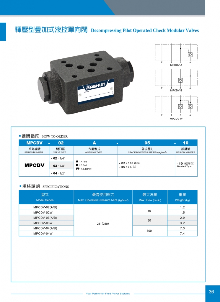 ASHUN釋壓型疊加式液控單向閥常規(guī)型號參考:MPCDV-02A-05-10 , MPCDV-02A-50-10 , MPCDV-02B-05-10 , MPCDV-02B-50-10 , MPCDV-02W-05-10 , MPCDV-02W-50-10 , MPCDV-03A-05-10 , MPCDV-03A-50-10 , MPCDV-03B-05-10 , MPCDV-03B-50-10 , MPCDV-03W-05-10 , MPCDV-03W-50-10 , MPCDV-04A-05-10 , MPCDV-04A-50-10 , MPCDV-04B-05-10 , MPCDV-04B-50-10 , MPCDV-04W-05-10 , MPCDV-04W-50-10