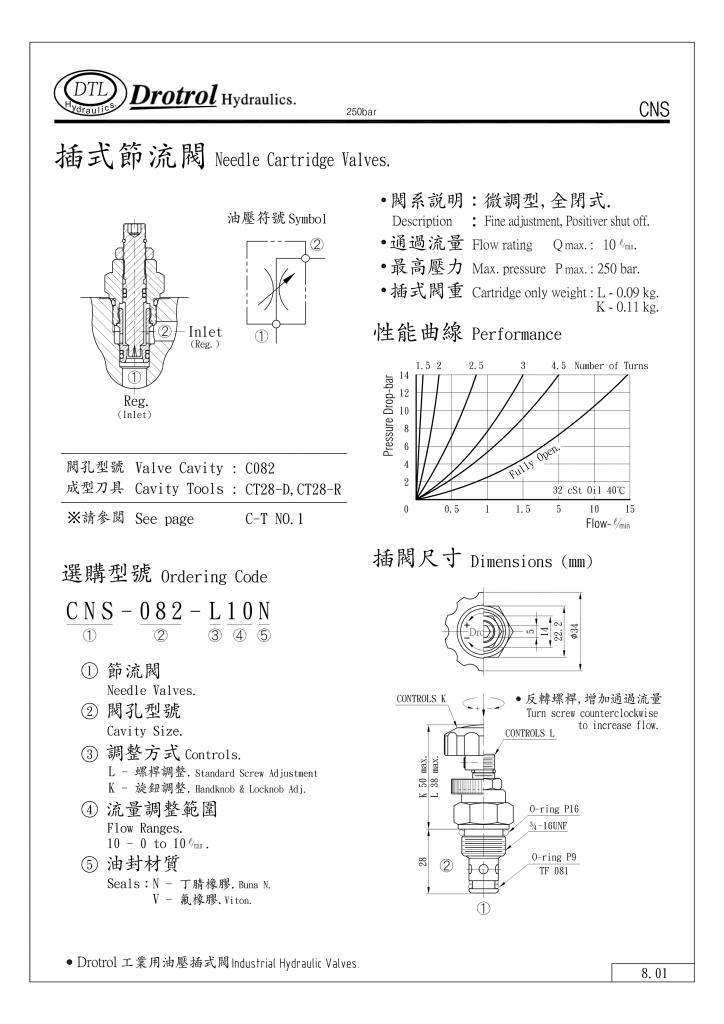 DTL插式節(jié)流閥部分常規(guī)型號參考:CNS-082-K10N , CNS-082-K10V , CNS-082-L10N , CNS-082-L10V , CNV-082-K30N , CNV-082-K30V , CNV-082-L30N , CNV-082-L30V , CNV-102-K60N , CNV-102-K60V , CNV-102-L60N , CNV-102-L60V , CNV-122-K120N , CNV-122-K120V , CNV-122-L120N , CNV-122-L120V ,