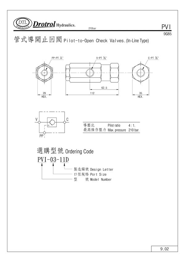 DTL管式導(dǎo)開止回閥部分常規(guī)型號(hào)參考:PVI-03-11D
