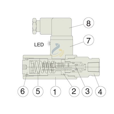 2 開關(guān)感應(yīng)座 6 壓力調(diào)整鈕
