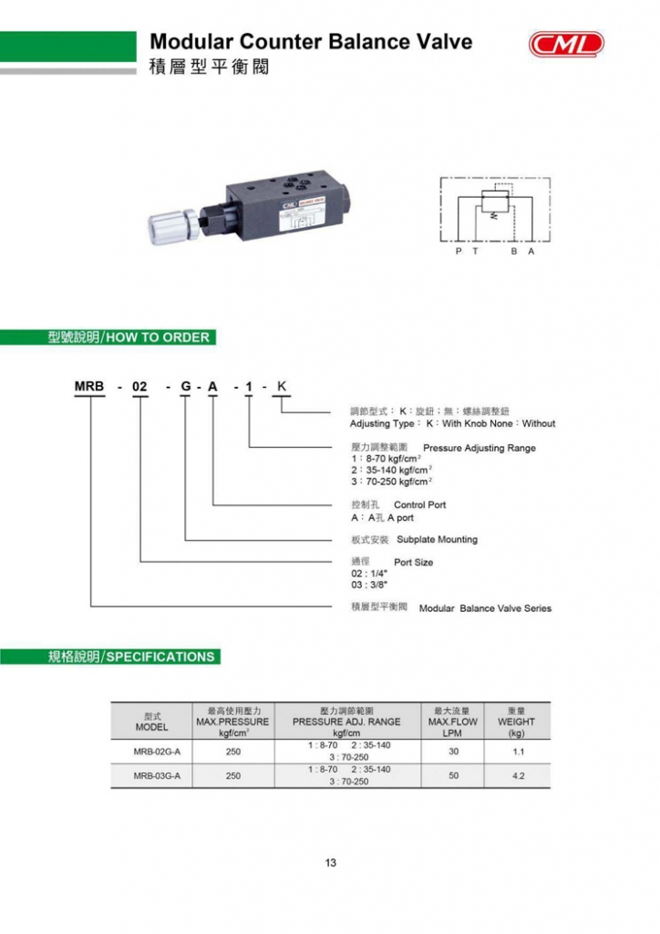 CML全懋疊加閥 積層型平衡閥 MRB-02,MRB-03系列