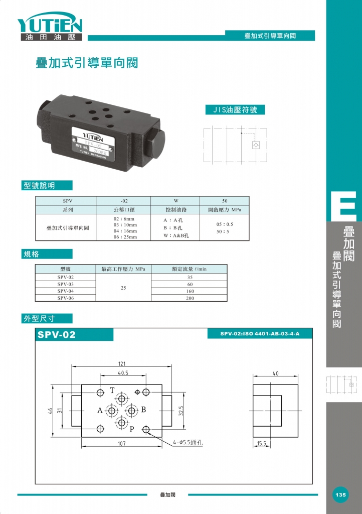 YUTIEN油田疊加閥 SPV-02,03,04,05系列疊加式引導單向閥