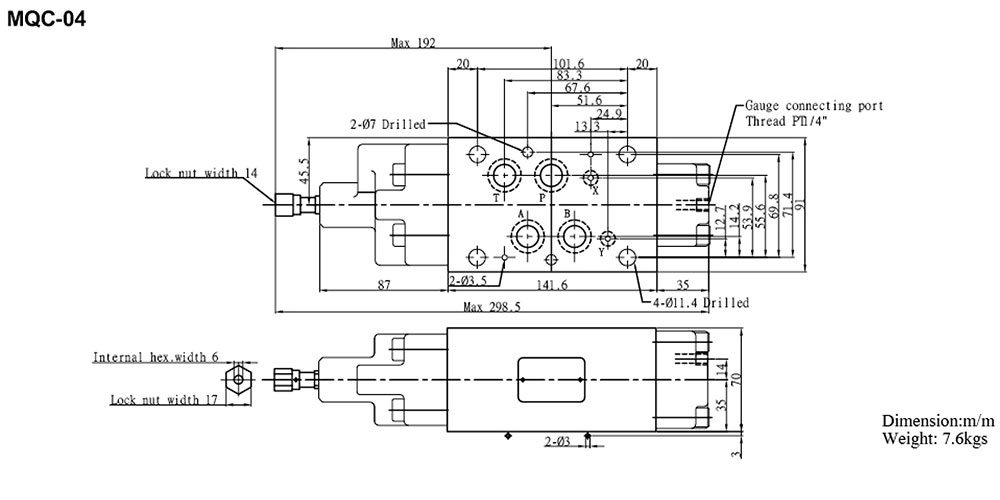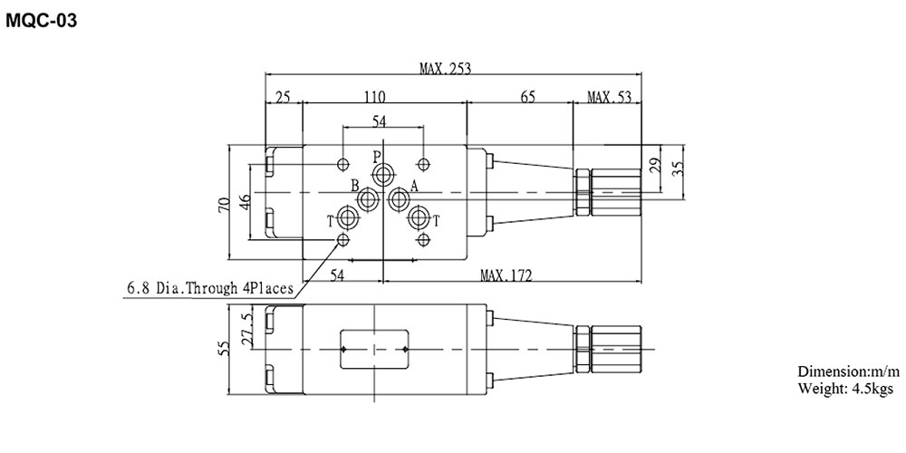 MQC 為防止垂直附載因重力而自由落下,可在執(zhí)行器的回油迴路上裝抗衡閥,施加壓力,防止自重墜落 特性 此抗衡閥可使用A、B孔抗衡壓力。 有內(nèi)洩漏,所以出口直接通油箱。 型式號(hào)碼 最大壓力 (KG/CM2) 最大流量 (L/MIN) MQC-02A (B) 210 35 MQC-03A (B) 70 MQC-04A (B) 300 MQC-06A (B) 180