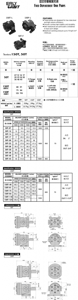 EALY弋力葉片泵 固定容量型輪葉泵 50T,150T,150F系列低壓定量葉片泵