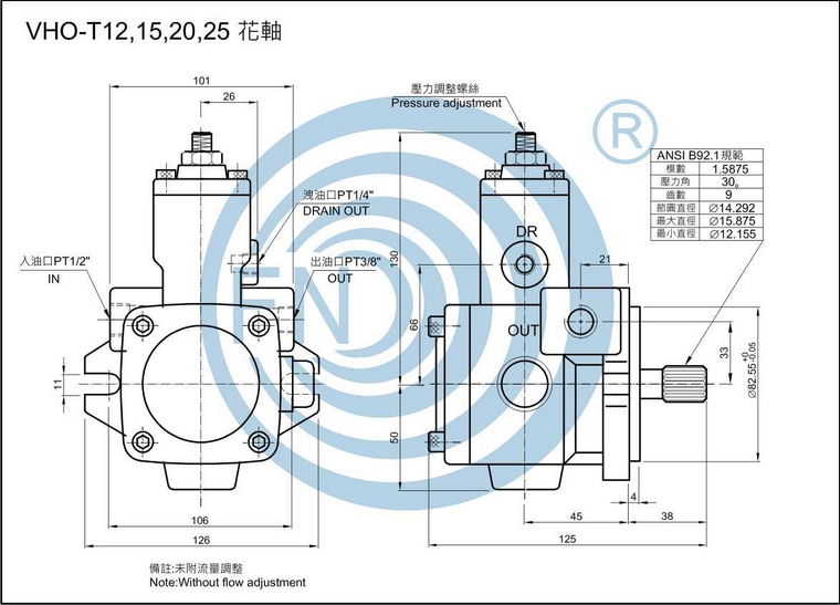 ◆本系列可變?nèi)萘咳~片幫浦,係針對油壓回路之需要油量而設(shè)計(jì),故能提高回路效率,降低騷音,降低油溫,使所輸入之能量,變成有效的功,達(dá)到節(jié)約動(dòng)力的目的。適用研磨機(jī),CNC數(shù)控自動(dòng)車床、工作母機(jī)、製鞋機(jī)械及其他各種專用機(jī)或單能機(jī)。另有7齒、9齒花鍵軸及專用配套電機(jī)。 ◆型式號碼表示法 / MODEL NUMBER DESIGNATON VHO──F──20──A2?–?? –T9?