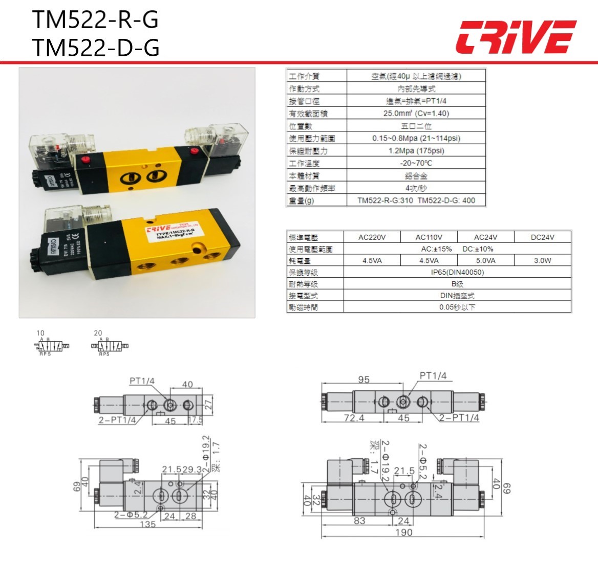 TRIVE電磁閥部分常規(guī)型號參考:TM522-R-G , TM522-D-G