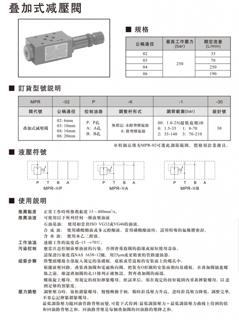 NORTHMAN疊加式減壓閥部分常規(guī)型號(hào)參考:MPR-02A-00-30 , MPR-02A-0-30 , MPR-02A-1-30 , MPR-02A-2-30 , MPR-02A-3-30 , MPR-02A-K-00-30 , MPR-02A-K-0-30 , MPR-02A-K-1-30 , MPR-02A-K-2-30 , MPR-02A-K-3-30 , MPR-02B-00-30 , MPR-02B-0-30 , MPR-02B-1-30 , MPR-02B-2-30 , MPR-02B-3-30 , MPR-02B-K-00-30 , MPR-02B-K-0-30 , MPR-02B-K-1-30 , MPR-02B-K-2-30 , MPR-02B-K-3-30 , MPR-02P-00-30 , MPR-02P-0-30 , MPR-02P-1-30 , MPR-02P-2-30 , MPR-02P-3-30 , MPR-02P-K-00-30 , MPR-02P-K-0-30 , MPR-02P-K-1-30 , MPR-02P-K-2-30 , MPR-02P-K-3-30 , MPR-03A-00-30 , MPR-03A-0-30 , MPR-03A-1-30 , MPR-03A-2-30 , MPR-03A-3-30 , MPR-03A-K-00-30 , MPR-03A-K-0-30 , MPR-03A-K-1-30 , MPR-03A-K-2-30 , MPR-03A-K-3-30 , MPR-03B-00-30 , MPR-03B-0-30 , MPR-03B-1-30 , MPR-03B-2-30 , MPR-03B-3-30 , MPR-03B-K-00-30 , MPR-03B-K-0-30 , MPR-03B-K-1-30 , MPR-03B-K-2-30 , MPR-03B-K-3-30 , MPR-03P-00-30 , MPR-03P-0-30 , MPR-03P-1-30 , MPR-03P-2-30 , MPR-03P-3-30 , MPR-03P-K-00-30 , MPR-03P-K-0-30 , MPR-03P-K-1-30 , MPR-03P-K-2-30 , MPR-03P-K-3-30 , MPR-04A-00-30 , MPR-04A-0-30 , MPR-04A-1-30 , MPR-04A-2-30 , MPR-04A-3-30 , MPR-04A-K-00-30 , MPR-04A-K-0-30 , MPR-04A-K-1-30 , MPR-04A-K-2-30 , MPR-04A-K-3-30 , MPR-04B-00-30 , MPR-04B-0-30 , MPR-04B-1-30 , MPR-04B-2-30 , MPR-04B-3-30 , MPR-04B-K-00-30 , MPR-04B-K-0-30 , MPR-04B-K-1-30 , MPR-04B-K-2-30 , MPR-04B-K-3-30 , MPR-04P-00-30 , MPR-04P-0-30 , MPR-04P-1-30 , MPR-04P-2-30 , MPR-04P-3-30 , MPR-04P-K-00-30 , MPR-04P-K-0-30 , MPR-04P-K-1-30 , MPR-04P-K-2-30 , MPR-04P-K-3-30 , MPR-06A-00-30 , MPR-06A-0-30 , MPR-06A-1-30 , MPR-06A-2-30 , MPR-06A-3-30 , MPR-06A-K-00-30 , MPR-06A-K-0-30 , MPR-06A-K-1-30 , MPR-06A-K-2-30 , MPR-06A-K-3-30 , MPR-06B-00-30 , MPR-06B-0-30 , MPR-06B-1-30 , MPR-06B-2-30 , MPR-06B-3-30 , MPR-06B-K-00-30 , MPR-06B-K-0-30 , MPR-06B-K-1-30 , MPR-06B-K-2-30 , MPR-06B-K-3-30 , MPR-06P-00-30 , MPR-06P-0-30 , MPR-06P-1-30 , MPR-06P-2-30 , MPR-06P-3-30 , MPR-06P-K-00-30 , MPR-06P-K-0-30 , MPR-06P-K-1-30 , MPR-06P-K-2-30 , MPR-06P-K-3-30
