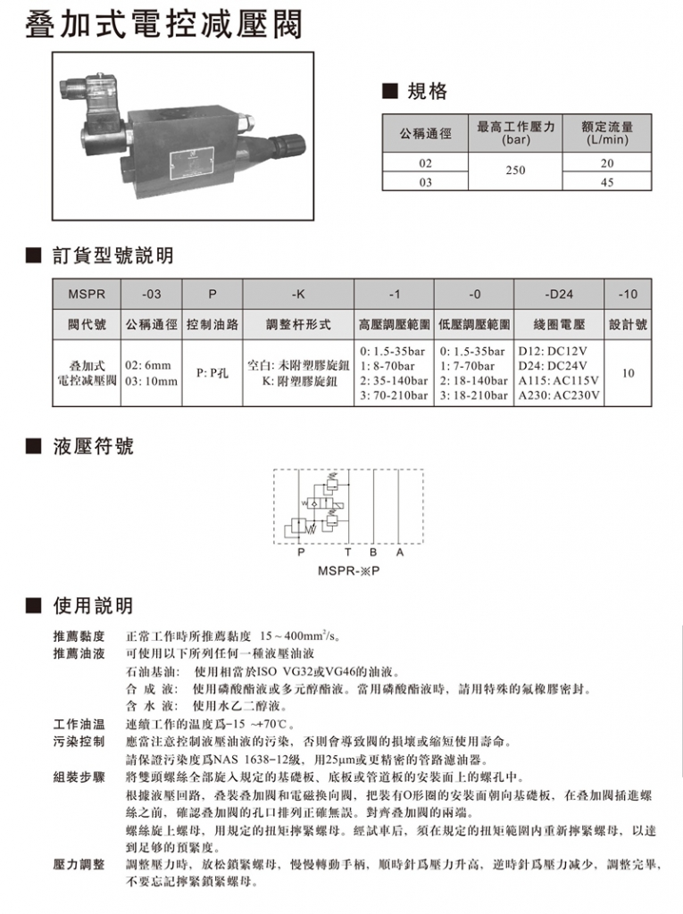 NORTHMAN疊加式電控減壓閥部分常規(guī)型號參考:MSPR-02P-0-0 , MSPR-02P-0-1 , MSPR-02P-0-2 , MSPR-02P-0-3 , MSPR-02P-1-0 , MSPR-02P-1-1 , MSPR-02P-1-2 , MSPR-02P-1-3 , MSPR-02P-2-0 , MSPR-02P-2-1 , MSPR-02P-2-2 , MSPR-02P-2-3 , MSPR-02P-3-0 , MSPR-02P-3-1 , MSPR-02P-3-2 , MSPR-02P-3-3 , MSPR-02P-K-0-0 , MSPR-02P-K-0-1 , MSPR-02P-K-0-2 , MSPR-02P-K-0-3 , MSPR-02P-K-1-0 , MSPR-02P-K-1-1 , MSPR-02P-K-1-2 , MSPR-02P-K-1-3 , MSPR-02P-K-2-0 , MSPR-02P-K-2-1 , MSPR-02P-K-2-2 , MSPR-02P-K-2-3 , MSPR-02P-K-3-0 , MSPR-02P-K-3-1 , MSPR-02P-K-3-2 , MSPR-02P-K-3-3 , MSPR-03P-0-0 , MSPR-03P-0-1 , MSPR-03P-0-2 , MSPR-03P-0-3 , MSPR-03P-1-0 , MSPR-03P-1-1 , MSPR-03P-1-2 , MSPR-03P-1-3 , MSPR-03P-2-0 , MSPR-03P-2-1 , MSPR-03P-2-2 , MSPR-03P-2-3 , MSPR-03P-3-0 , MSPR-03P-3-1 , MSPR-03P-3-2 , MSPR-03P-3-3 , MSPR-03P-K-0-0 , MSPR-03P-K-0-1 , MSPR-03P-K-0-2 , MSPR-03P-K-0-3 , MSPR-03P-K-1-0 , MSPR-03P-K-1-1 , MSPR-03P-K-1-2 , MSPR-03P-K-1-3 , MSPR-03P-K-2-0 , MSPR-03P-K-2-1 , MSPR-03P-K-2-2 , MSPR-03P-K-2-3 , MSPR-03P-K-3-0 , MSPR-03P-K-3-1 , MSPR-03P-K-3-2 , MSPR-03P-K-3-3