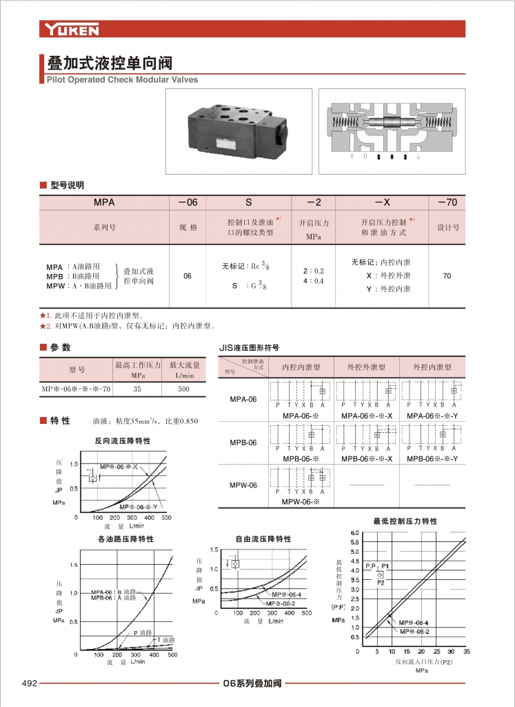 YUKEN疊加式液控單向閥部分常規(guī)型號參考:MPA-06-2-70 , MPA-06-2-X-70 , MPA-06-2-Y-70 , MPA-06-4-70 , MPA-06-4-X-70 , MPA-06-4-Y-70 , MPA-06S-2-70 , MPA-06S-2-X-70 , MPA-06S-2-Y-70 , MPA-06S-4-70 , MPA-06S-4-X-70 , MPA-06S-4-Y-70 , MPB-06-2-70 , MPB-06-2-X-70 , MPB-06-2-Y-70 , MPB-06-4-70 , MPB-06-4-X-70 , MPB-06-4-Y-70 , MPB-06S-2-70 , MPB-06S-2-X-70 , MPB-06S-2-Y-70 , MPB-06S-4-70 , MPB-06S-4-X-70 , MPB-06S-4-Y-70 , MPW-06-2-70 , MPW-06-2-X-70 , MPW-06-2-Y-70 , MPW-06-4-70 , MPW-06-4-X-70 , MPW-06-4-Y-70 , MPW-06S-2-70 , MPW-06S-2-X-70 , MPW-06S-2-Y-70 , MPW-06S-4-70 , MPW-06S-4-X-70 , MPW-06S-4-Y-70