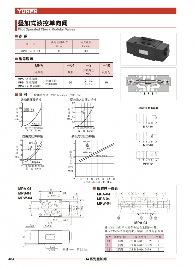 YUKEN油研疊加閥 MPA,MPB,MPW-04系列疊加式液控單向閥