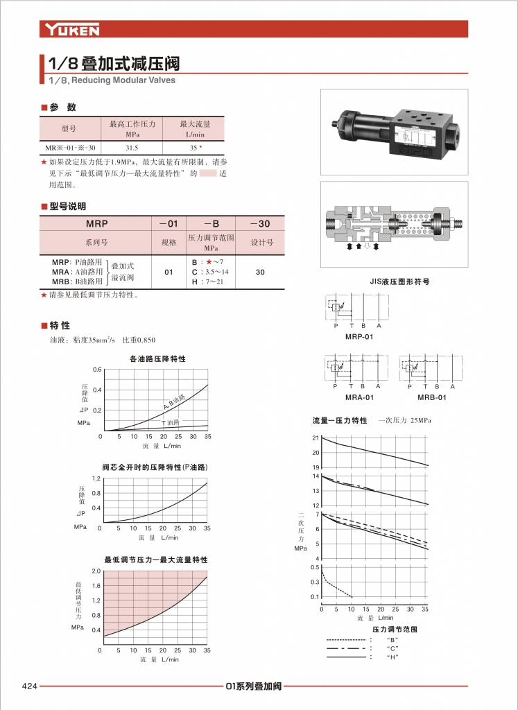 YUKEN油研疊加閥 MRP,MRA,MRB-04系列疊加式減壓閥-YUKEN油研