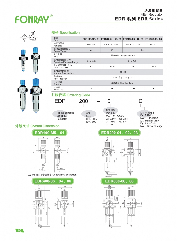 EFR100-M5、01 M5、1/8″ 500 5 μm 或 40 μm 0.15 ~ 0.85
