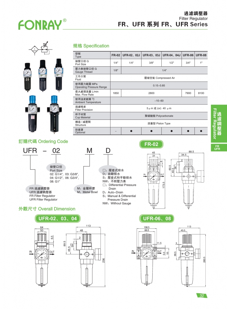 FONRAY芳銳氣源處理元件 過(guò)濾調(diào)壓閥
