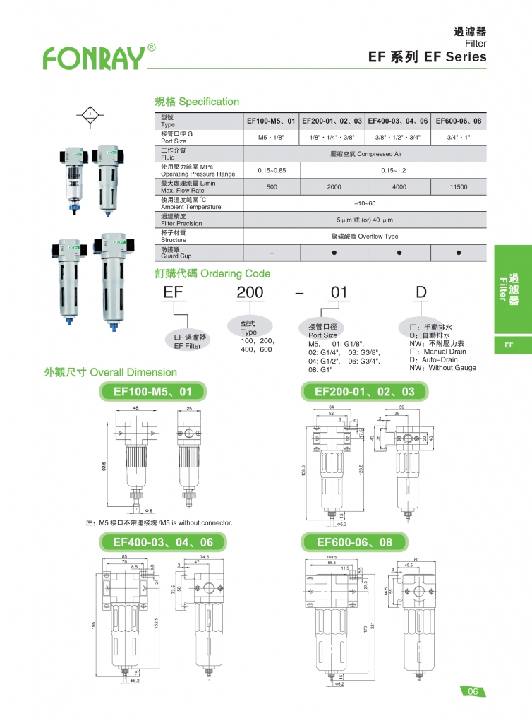 EF100-M5、01 M5、1/8″ 500 5 μm 或 40 μm 0.15 ~ 0.85