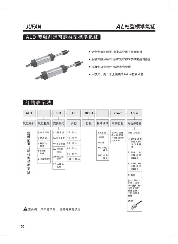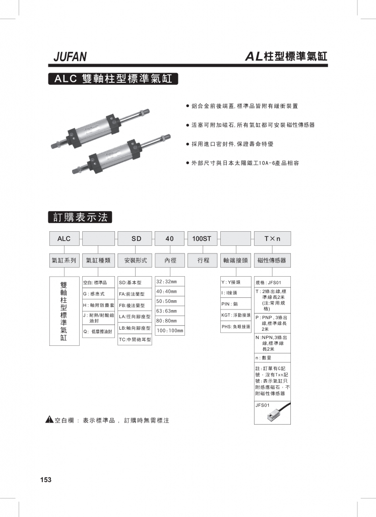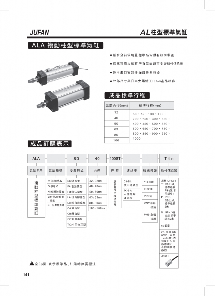 JUFAN君帆氣缸 AL系列柱形標準氣缸