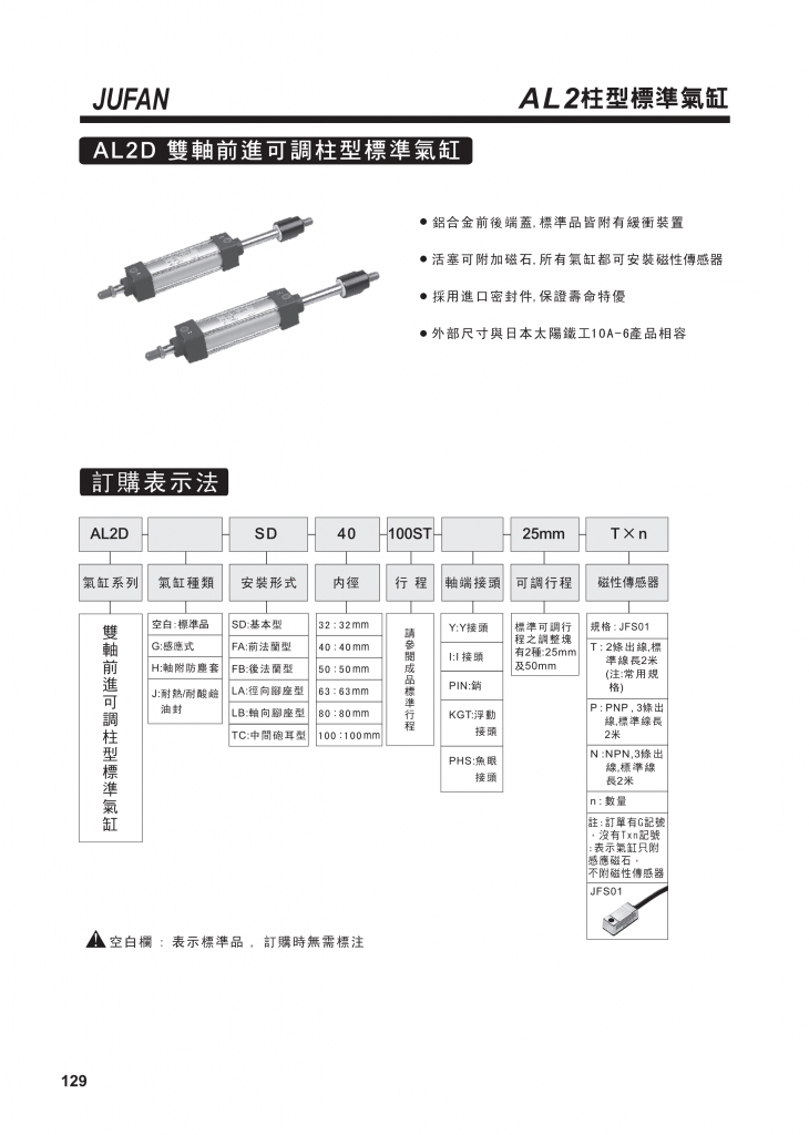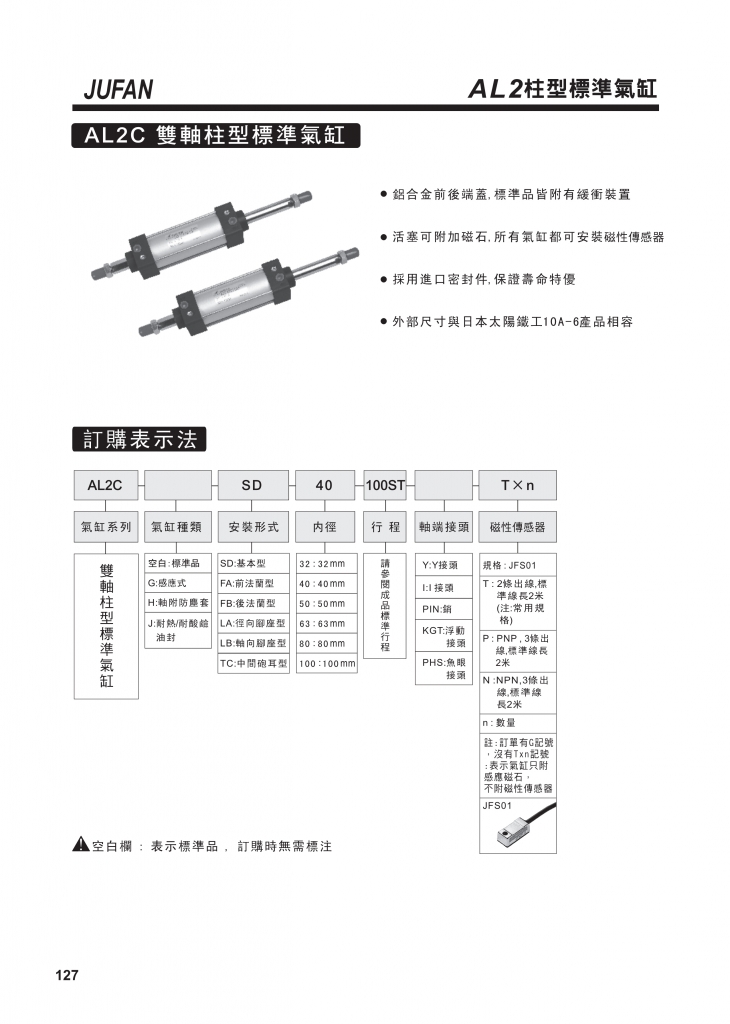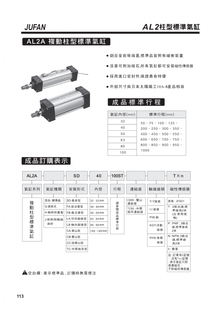 JUFAN君帆氣缸 AL2系列柱形標(biāo)準(zhǔn)氣缸