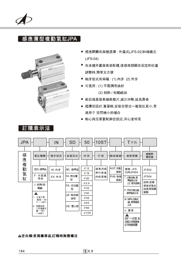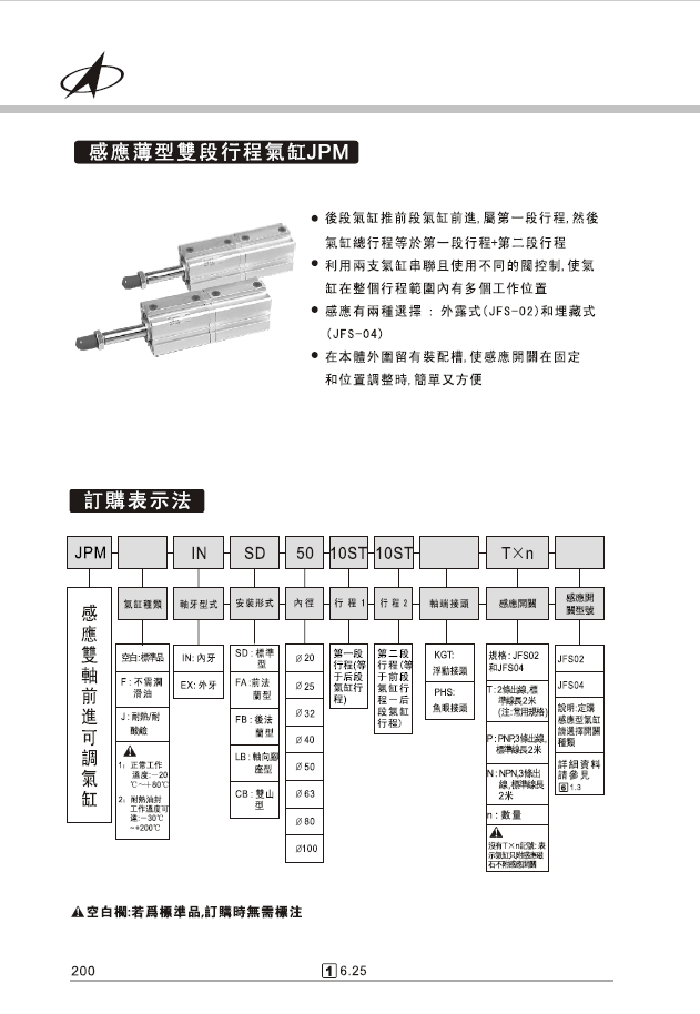 JPA感應(yīng)薄型復(fù)動(dòng)氣缸JPB感應(yīng)薄型單動(dòng)氣缸JPC感應(yīng)薄型雙軸氣缸JPD感應(yīng)薄型雙軸前進(jìn)可調(diào)氣缸JPL感應(yīng)薄型長(zhǎng)行程復(fù)動(dòng)氣缸JPM感應(yīng)薄型雙端行程氣缸JPN感應(yīng)薄型背向氣缸