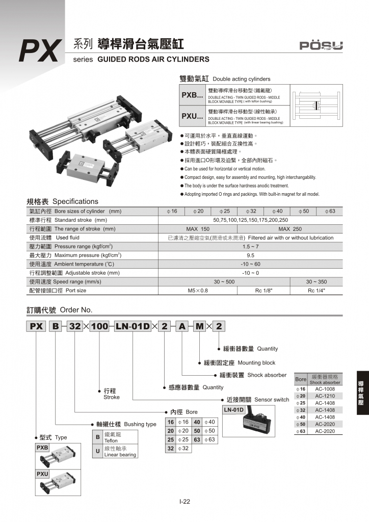 | PXU… | 雙動(dòng)導(dǎo)桿滑臺(tái)移動(dòng)型 (線性軸承) |