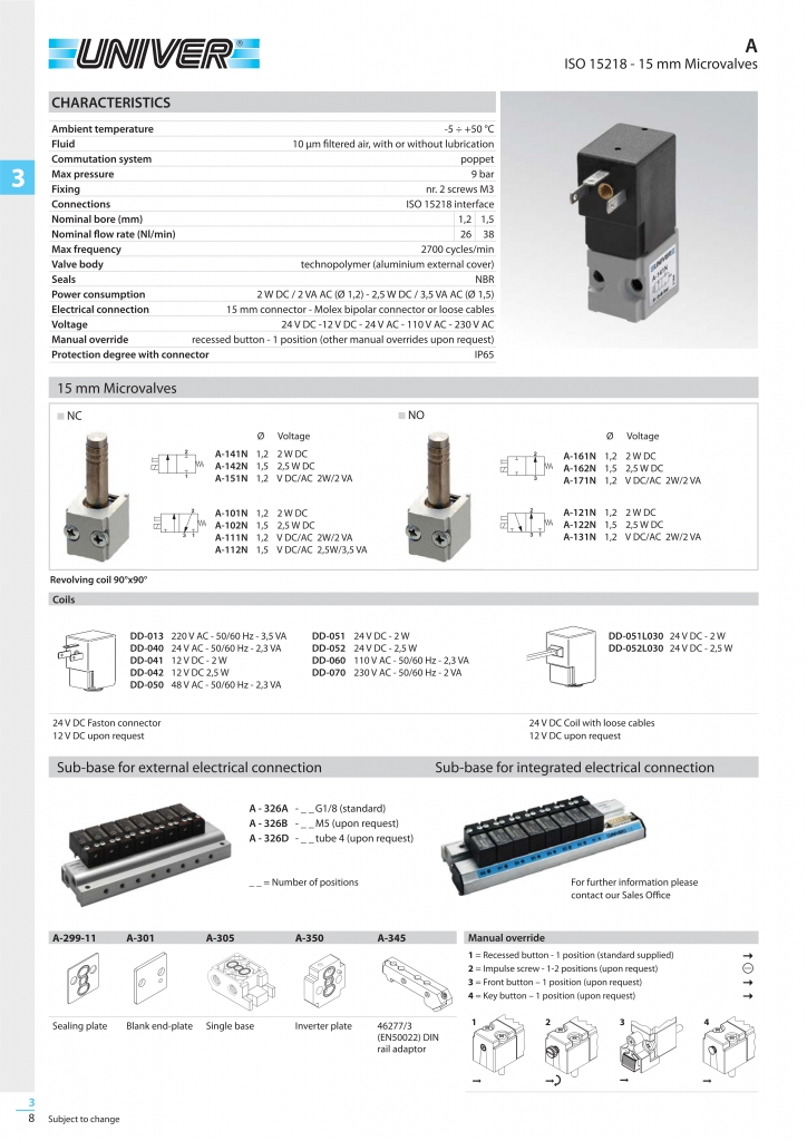 UNIVER微型閥主要型號(hào):A-100N , A-101N , A-102N , A-110N , A-111N , A-112N , A-120N , A-121N , A-122N , A-130N , A-131N , A-140N , A-141N , A-142N , A-150N , A-151N , A-152N , A-160N , A-161N , A-162N , A-170N , A-171N