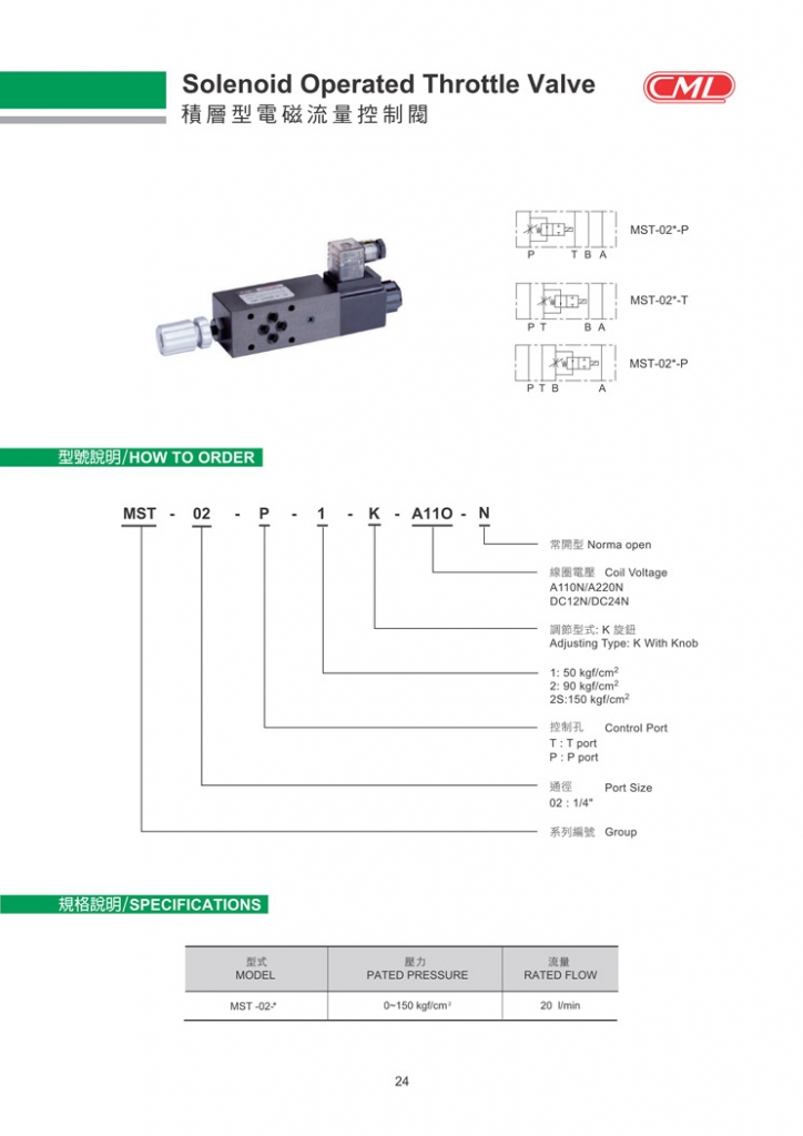 CML積層閥,積層型電磁流量控制閥MST-02系列型號參考
