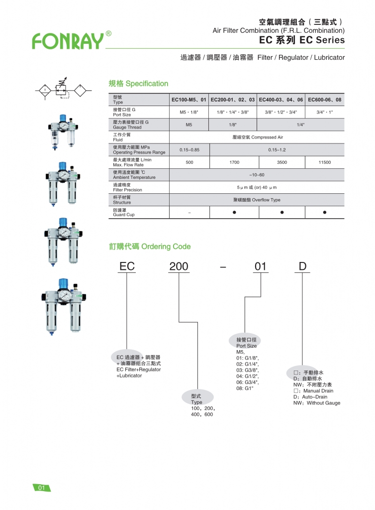 過濾器 + 調壓閥 + 油霧器 – EC 過濾器 + 調壓器 + 油霧器