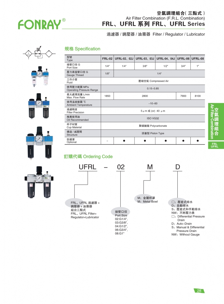 過濾器 + 調壓閥 + 油霧器 – FRL、UFRL