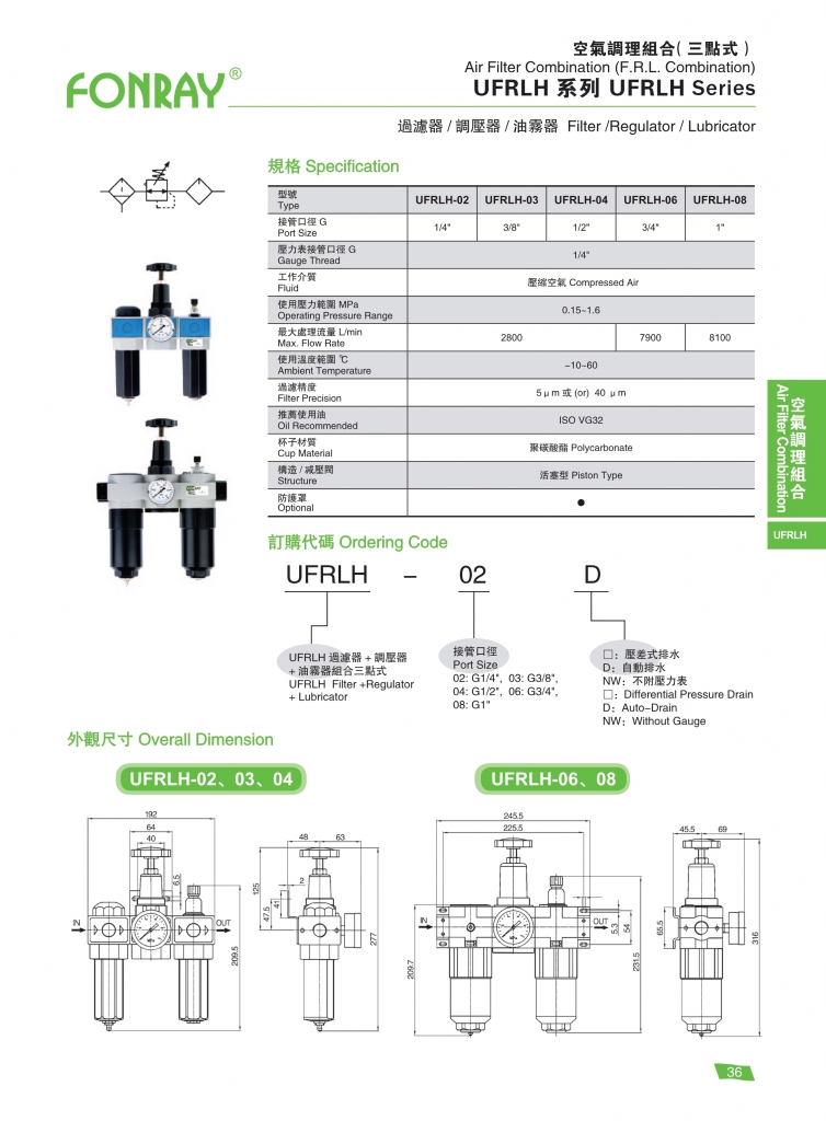 過濾器 + 調壓閥 + 油霧器 – UFRLH 系列 高壓型