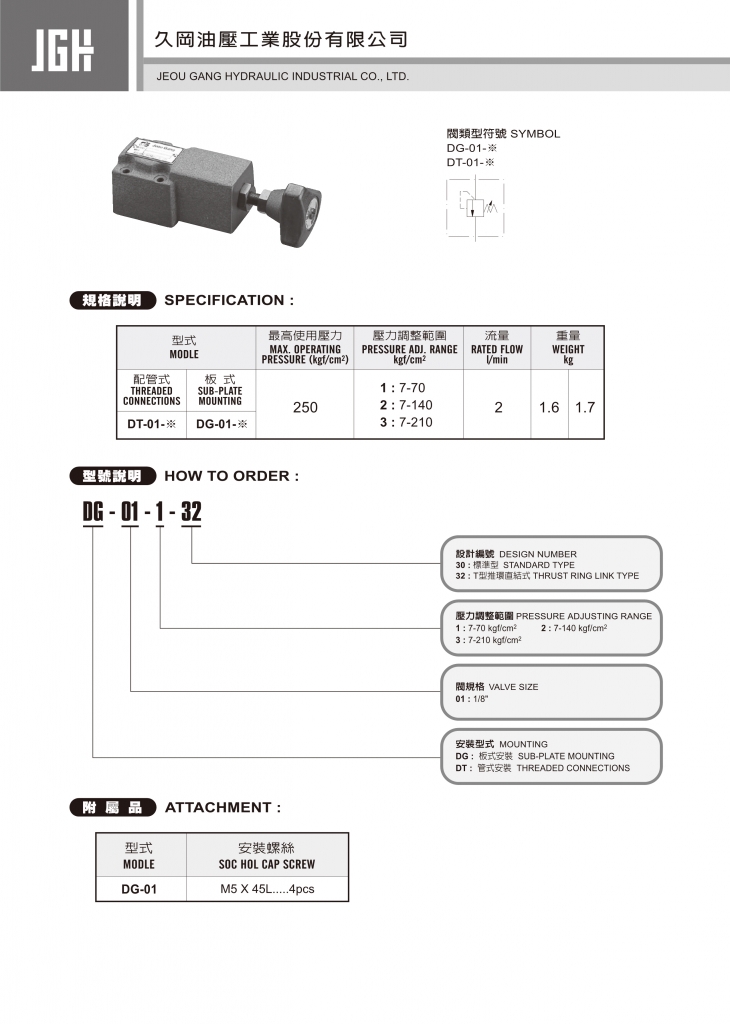 JGH遠程控制溢流閥常規(guī)型號參考:DG-01-1 , DG-01-2 , DG-01-3 , DT-01-1 , DT-01-2 , DT-01-3